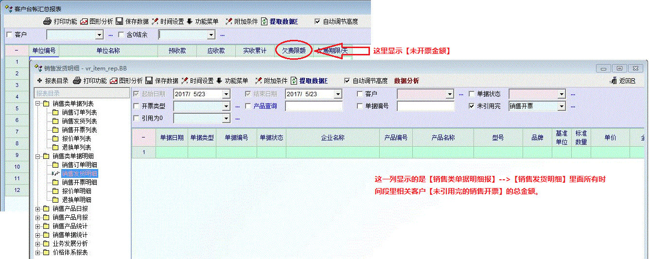 楼主的意思是,在“客户台账汇总报表中”能显示未开票金额的数据。
