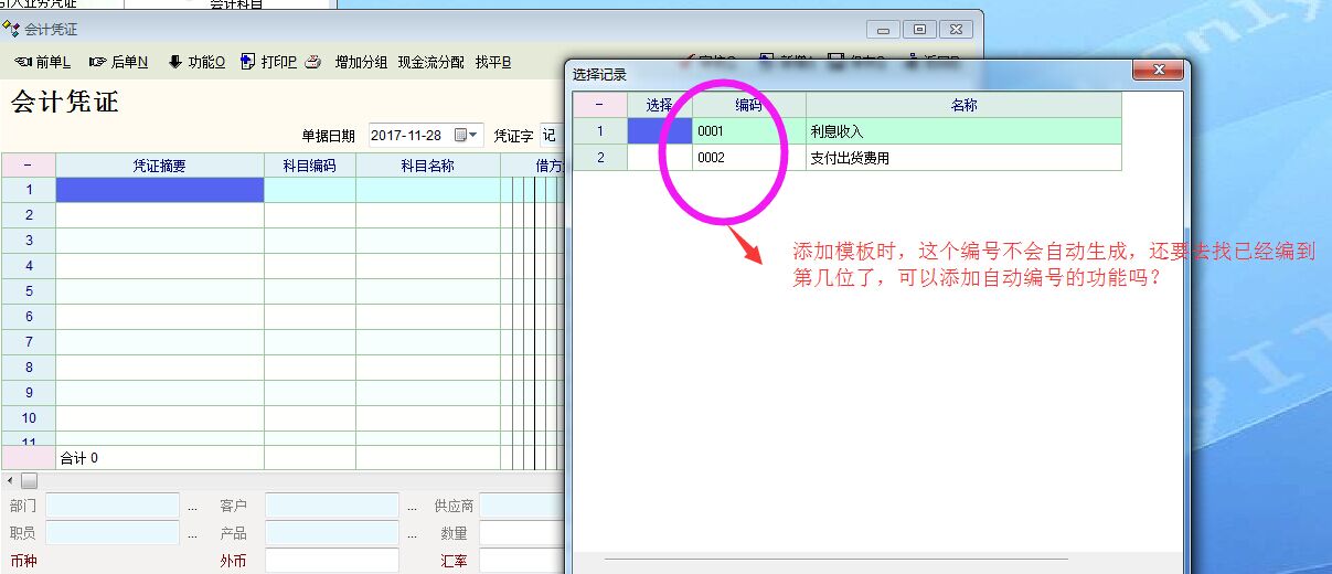 会计凭证添加模块时,模板编码不会自动添加,需要找到编到第几号了,再去添加模块,能添加自动编号吗