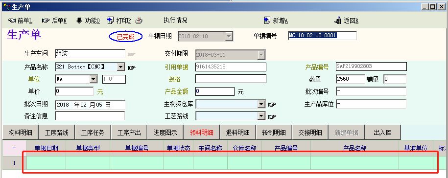 单据要审核后才能够被下级单据引用。这个肯定是知道的 "加工入库单"在相关业务流程中改成 加工入库单引用出库单的话,引用过来的不是所需要入库的明细 PS:产品是由2个物料组装而成的 |