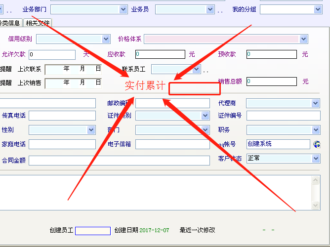 因业务和实际需要,求客户资料增加实付累计。