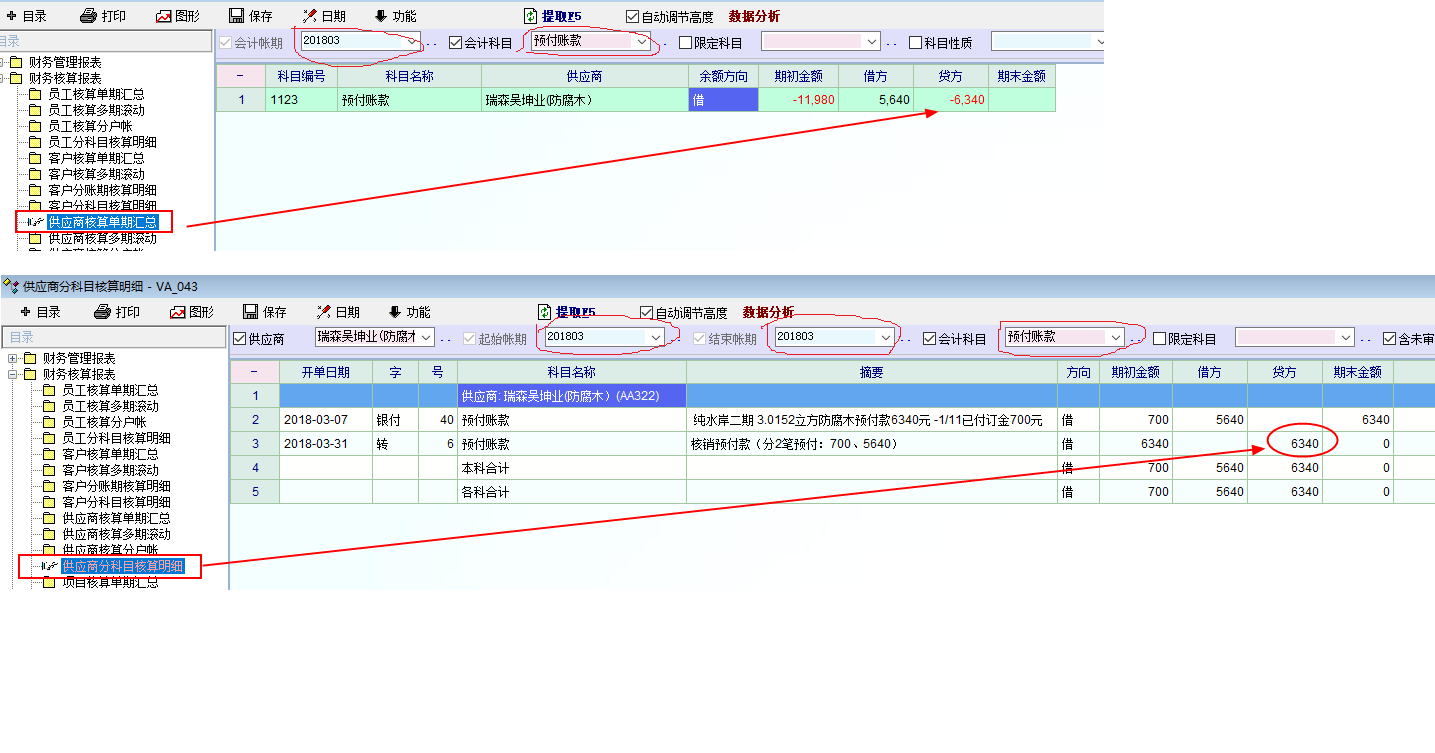 求助_凭证报表中“供应商单期汇总报表”与“分科明细报建表”显示不对_产供销