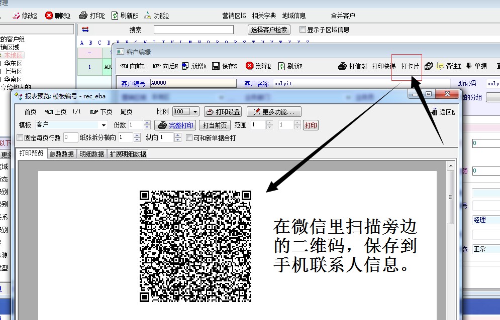 1.客户卡片模块里增加一个二维码定义