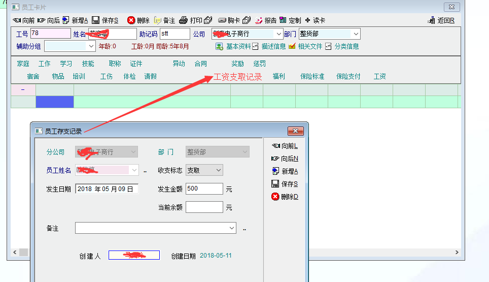 在员工资料中没法查询到该员工的工资存支记录,建议在员工资料中添加员工工资存支记录。