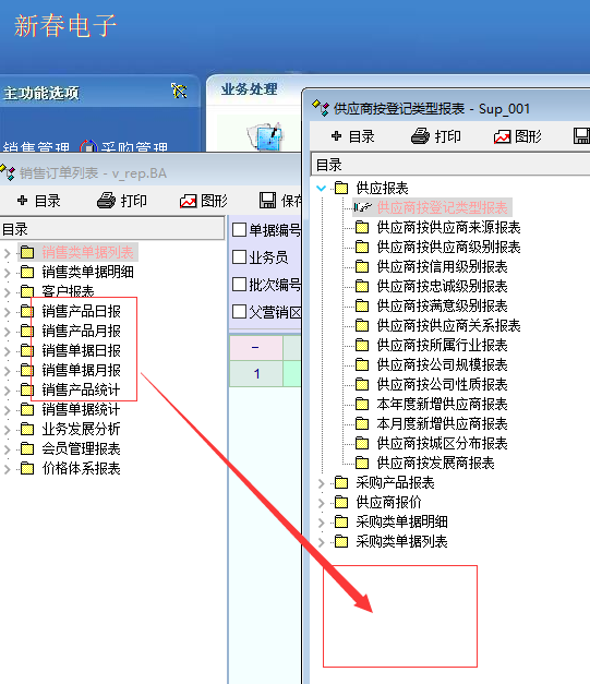 把现有的销售报表全复制到采购报表中,改一下不同的单据类型,数据 就出来了。