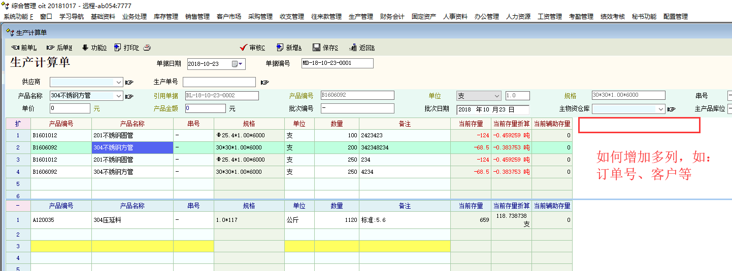 求助_生产计算单,扩展网格上能否自定义列?_产供销