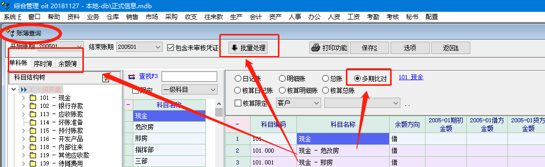 单科账有批量处理是因为单科账针对每个科目检索,序时簿和余额簿则不是这样的。