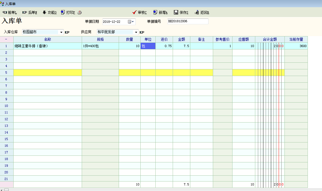 入库单明细的合计金额就成倍了,不知是什么原因造成的