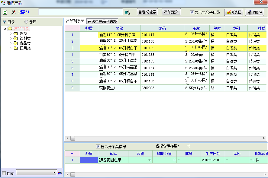 双击行自动数量为1,也可以直接数量输入需要的数量。这样是方便选择后再输入数量。