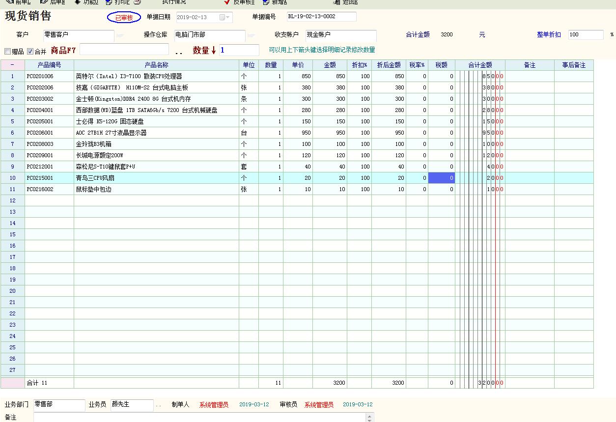 现货采购价格2930,现货销售价额3200,查询报销显示毛利润3183