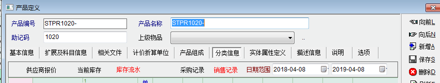 在产品定义分类信息中只能查询到当前库存,没法查看进出流水,建议在产品定义中的分类信息添加库存进出流水帐