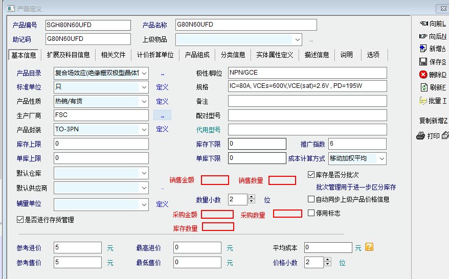 建议在产品定义详情页添加该产品累计销售金额,销售数量等统计数据。这样当要了解该产品大概的采销情况时就不用额外去打开统计报表了。