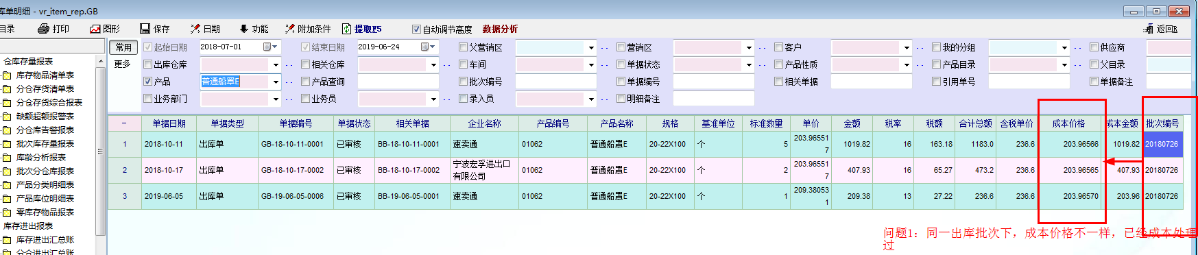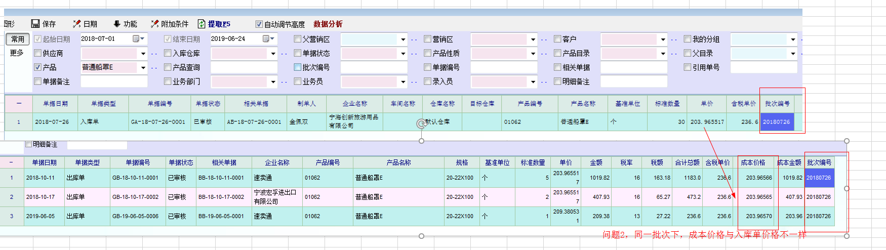 问题二:出库批次与对应的入库批次价格不一样