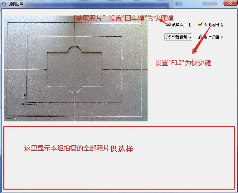 相关文件很好用,就是在拍照上传时环节很繁琐,目前多数是用鼠标点击,能不能在给“上传”、“视频拍照”、“截取照片”(建议回车键)、“采用返回”加上快捷键。另,“截取拍照”后在下方显示全部本组拍摄的照片,再选择“采用返回”,这样可以提高效率。望开发大师们采纳,谢谢。