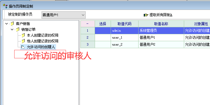 允许访问的审核员, 那么业务员之间,设置本选项,就能达到单据不能互相访问的目的了.