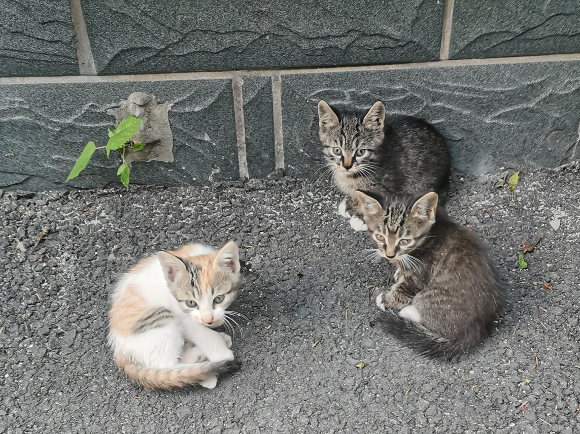 小猫还在吃奶的阶段,好心的邻居一日三餐都会给母猫准备吃的,猫粮牛奶面包,有时候是饭。母猫不需要出去找吃的,大部分时间都在照看小猫,有时候给小猫们喂奶。