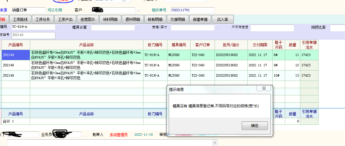 各位大神,显示这种没有模具信息单,怎么处理? 模具信息已设置