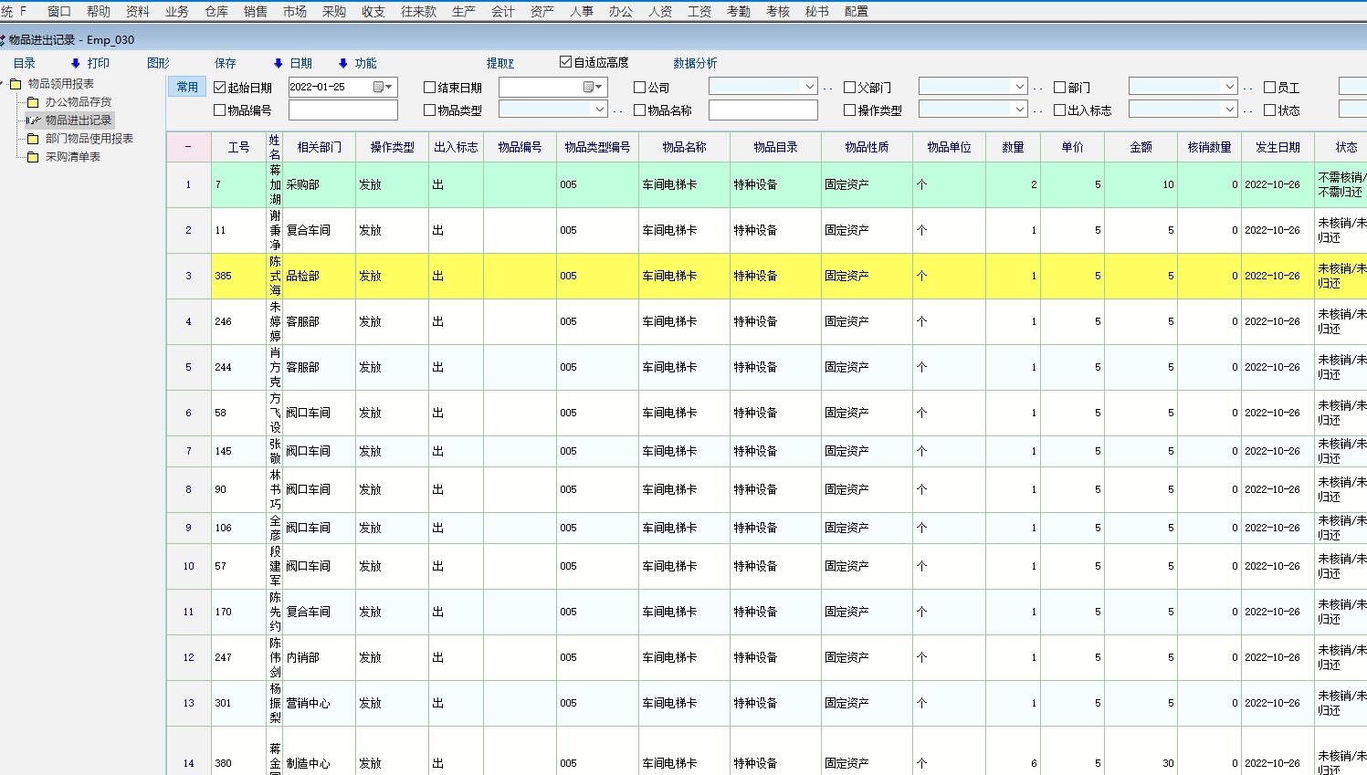 求助_物品管理报表查找员工领用记录时无法排除离职人员_..园.地..