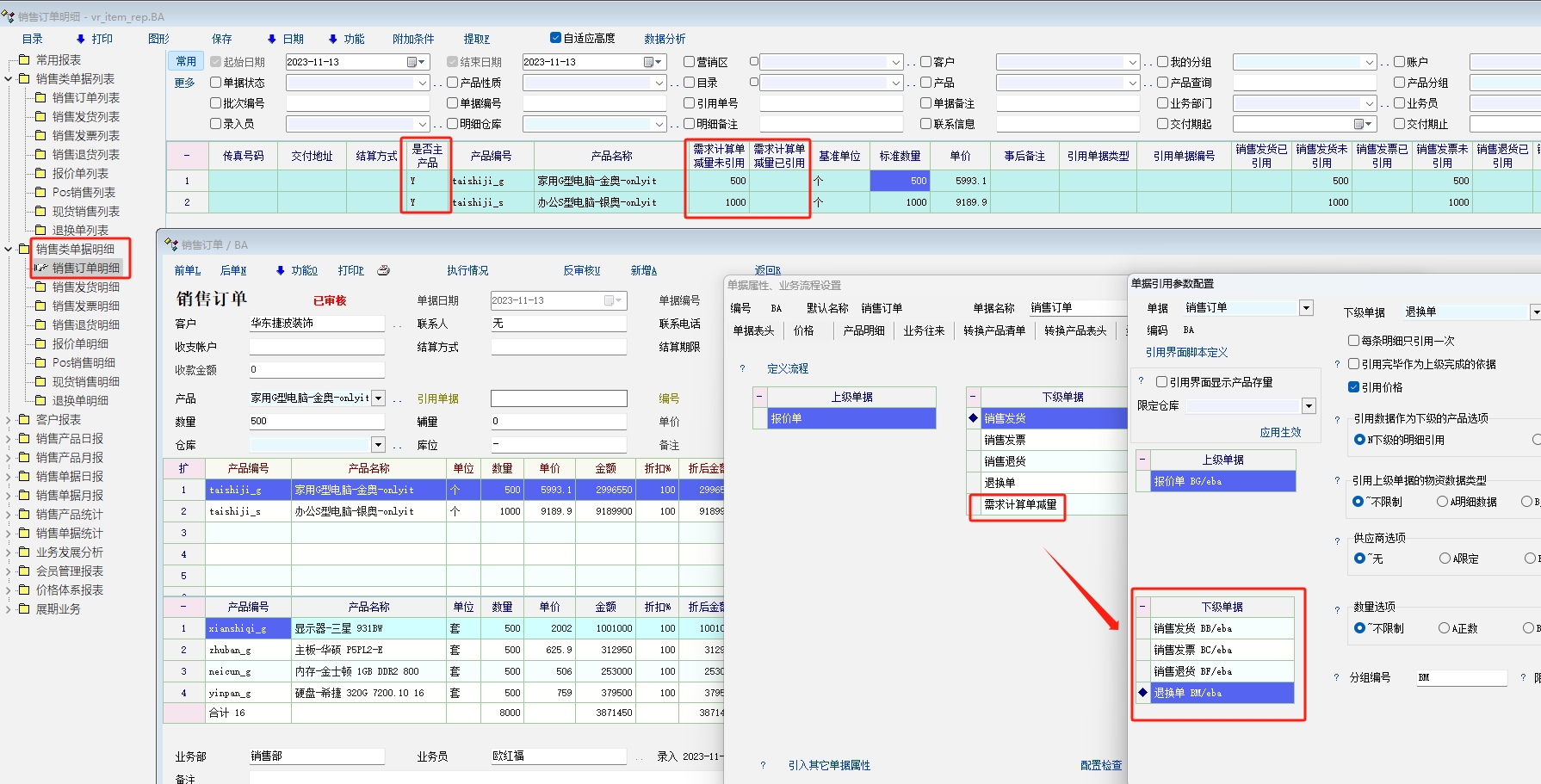 2、如何修改销售单中的 需求计算单减量?让它与需求分析及生产计算单进行关联,并能够在 销售订单明细的“需求计算单减量”里显示