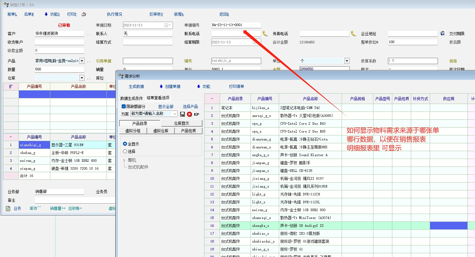 2、需求分析产生的物料需求与主产品需求,在创建生产计算单与采购订单时,无法再关联销售单了