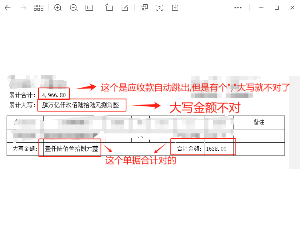 如图所示: 跟客户是有账期的,然后想把应收款显示在打印的表头上,大写就出现这样的问题了 |