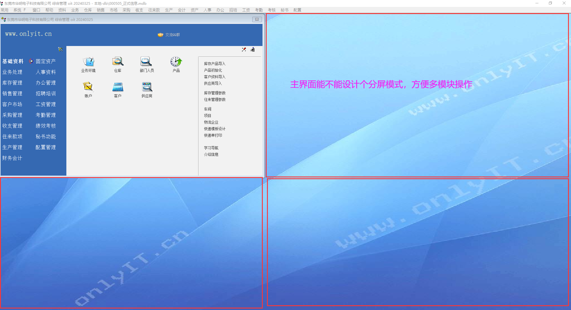 主界面能不能设计个分屏模式,方便多模块操作,多模块操作总是遮挡切换,影响工作效率